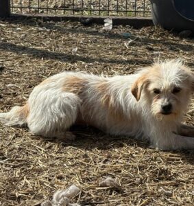 Ze is een bescheiden hondje, eentje die nog voorzichtig om zich heen kijkt, alsof ze zich afvraagt of ze nu écht veilig is. Veilig, op een plek waar mensen haar geen kwaad meer doen. Die zekerheid moet nog langzaam landen in haar hartje maar deze kleine meid is bijna “om”.