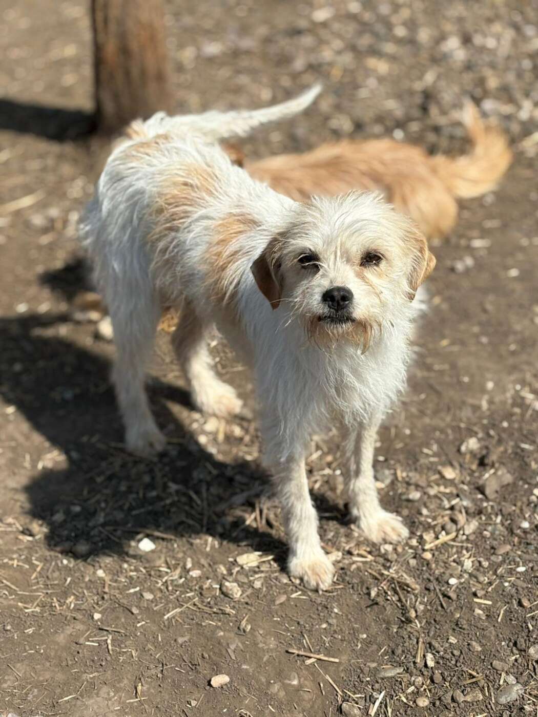 Ze is een bescheiden hondje, eentje die nog voorzichtig om zich heen kijkt, alsof ze zich afvraagt of ze nu écht veilig is. Veilig, op een plek waar mensen haar geen kwaad meer doen. Die zekerheid moet nog langzaam landen in haar hartje maar deze kleine meid is bijna “om”.