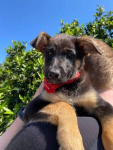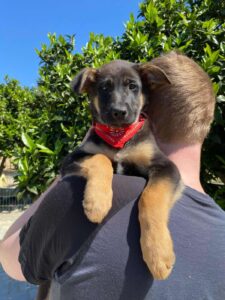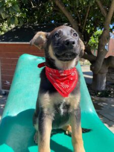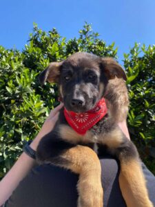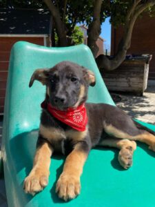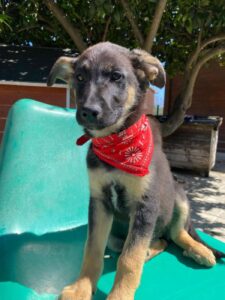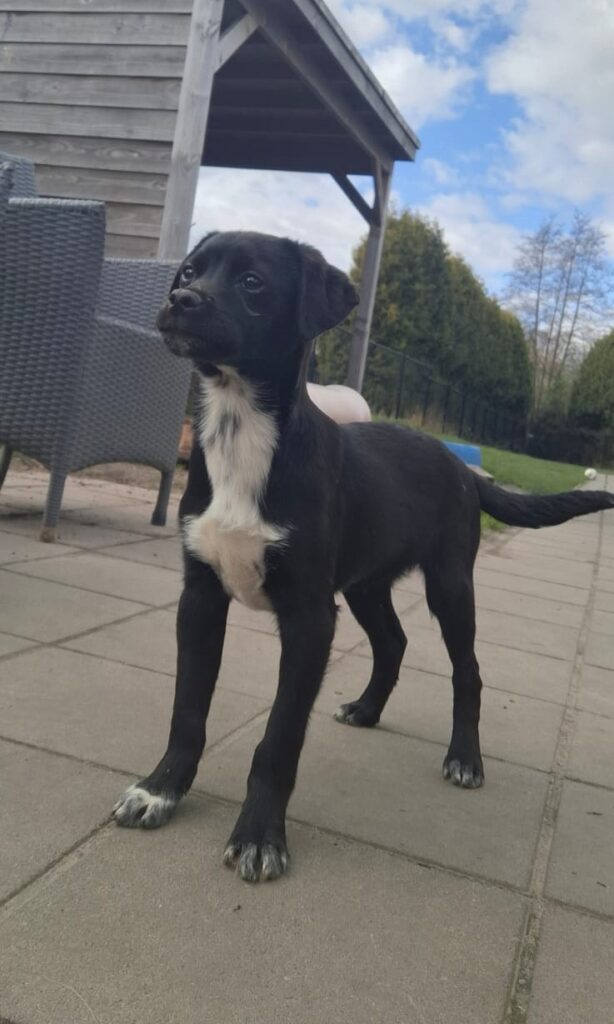 Sky, een van die pupjes, is een vrolijke, leergierige teef. Ze loopt graag kwispelend achter de vrijwilligers aan, alsof ze hun schaduw is. Spelen is haar grote passie: ze rolt in het gras, ravot met haar nestgenootjes en zoekt daarna een zonnig plekje om languit te liggen. In de vrijwilligerswoning laat ze zien hoe goed ze zich aanpast. Ze leert stap voor stap hoe een huis voelt, hoe wandelen aan de lijn werkt en hoe fijn het is om aandacht en knuffels te krijgen.