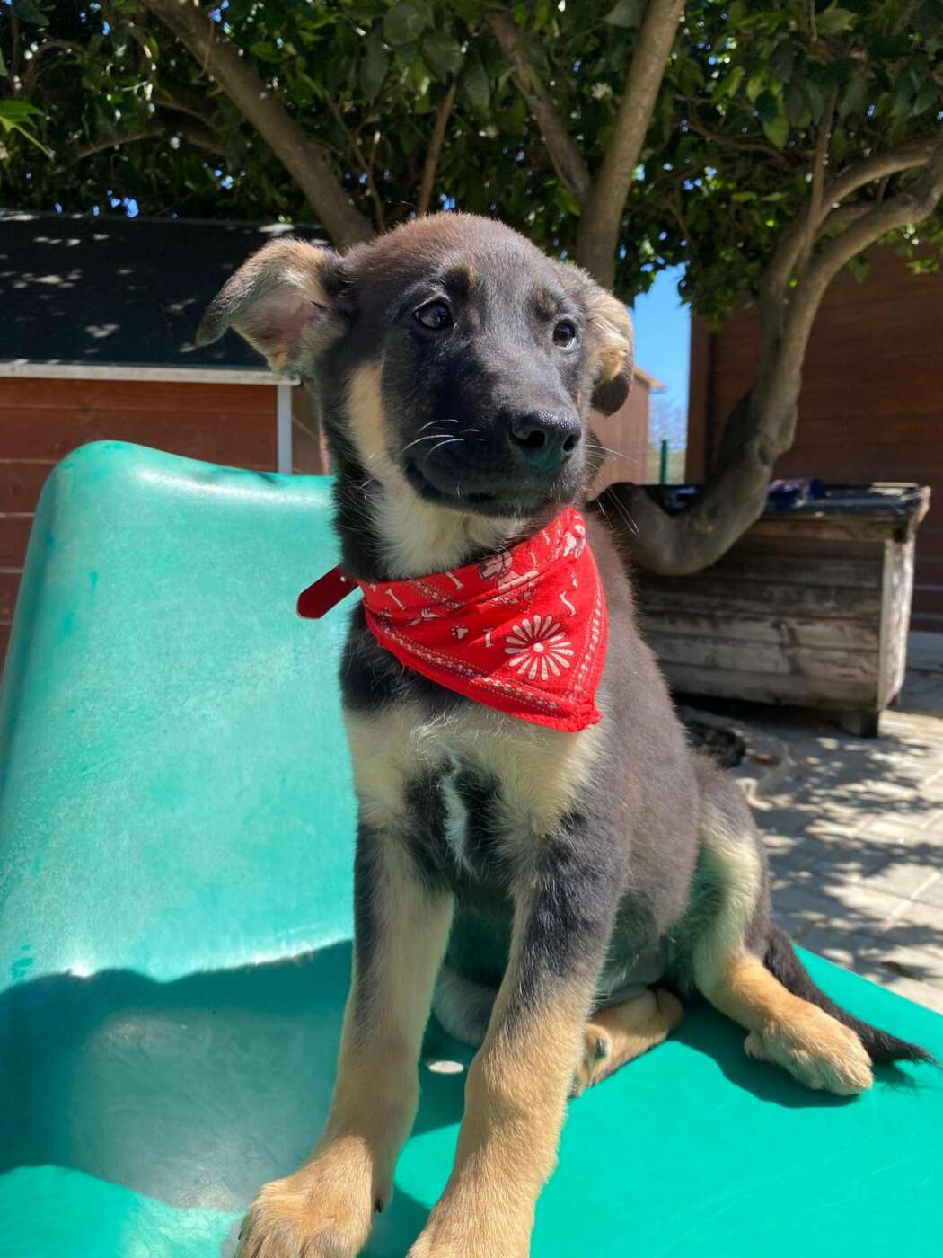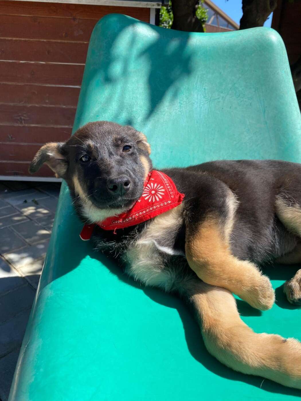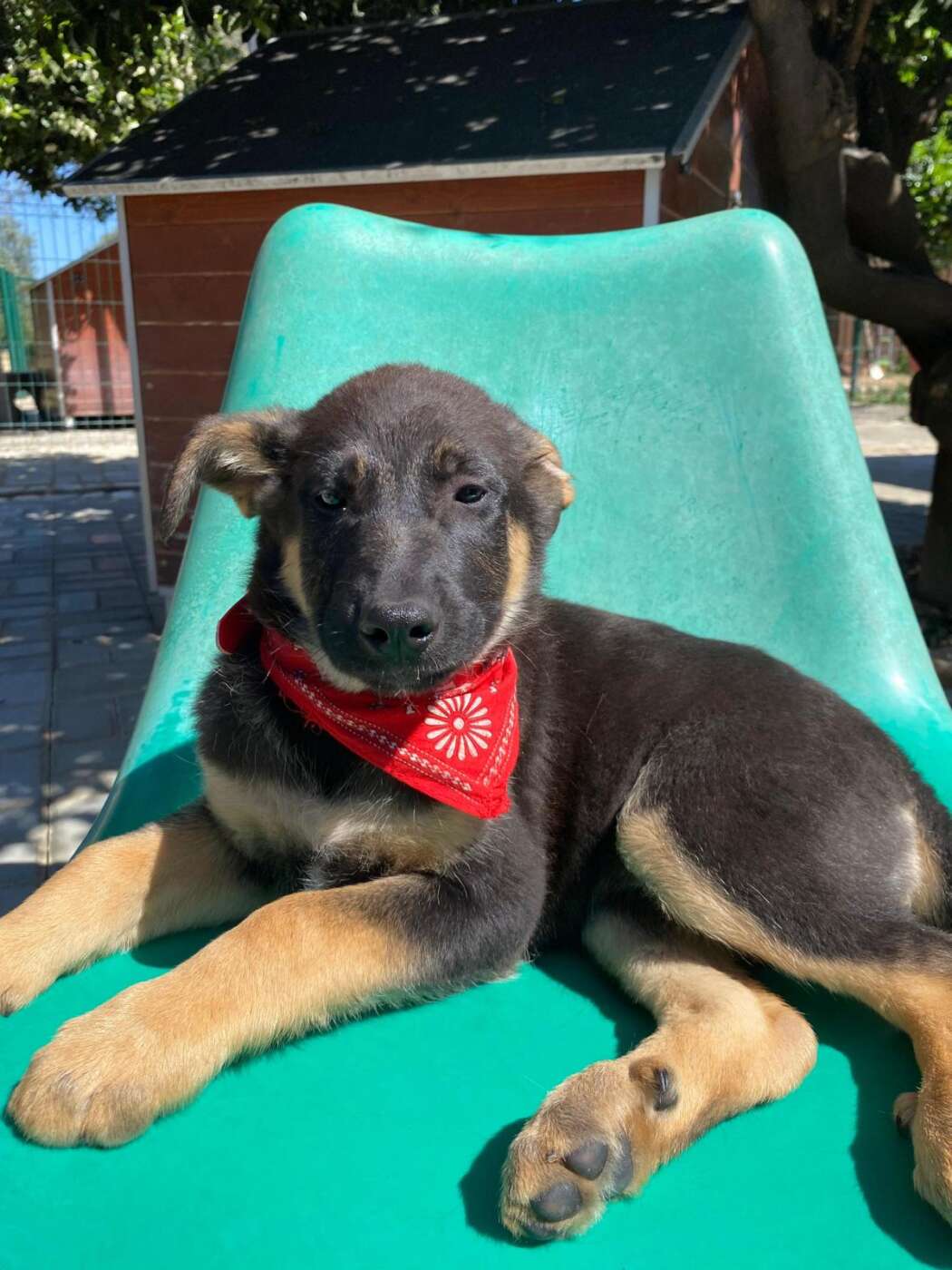 Sky, een van die pupjes, is een vrolijke, leergierige teef. Ze loopt graag kwispelend achter de vrijwilligers aan, alsof ze hun schaduw is. Spelen is haar grote passie: ze rolt in het gras, ravot met haar nestgenootjes en zoekt daarna een zonnig plekje om languit te liggen. In de vrijwilligerswoning laat ze zien hoe goed ze zich aanpast. Ze leert stap voor stap hoe een huis voelt, hoe wandelen aan de lijn werkt en hoe fijn het is om aandacht en knuffels te krijgen.