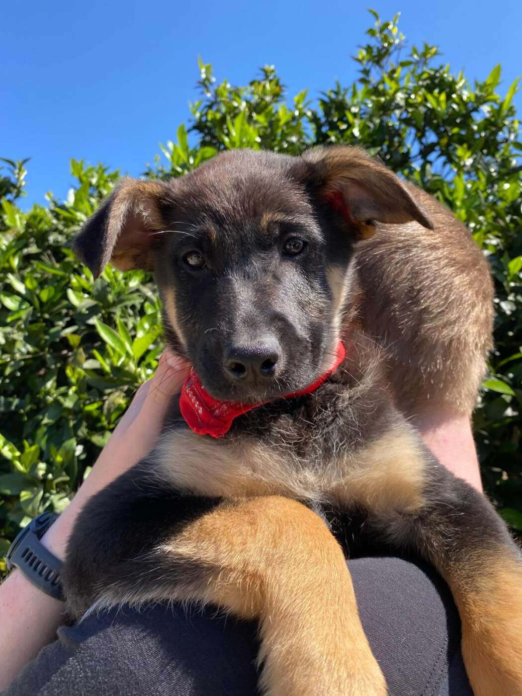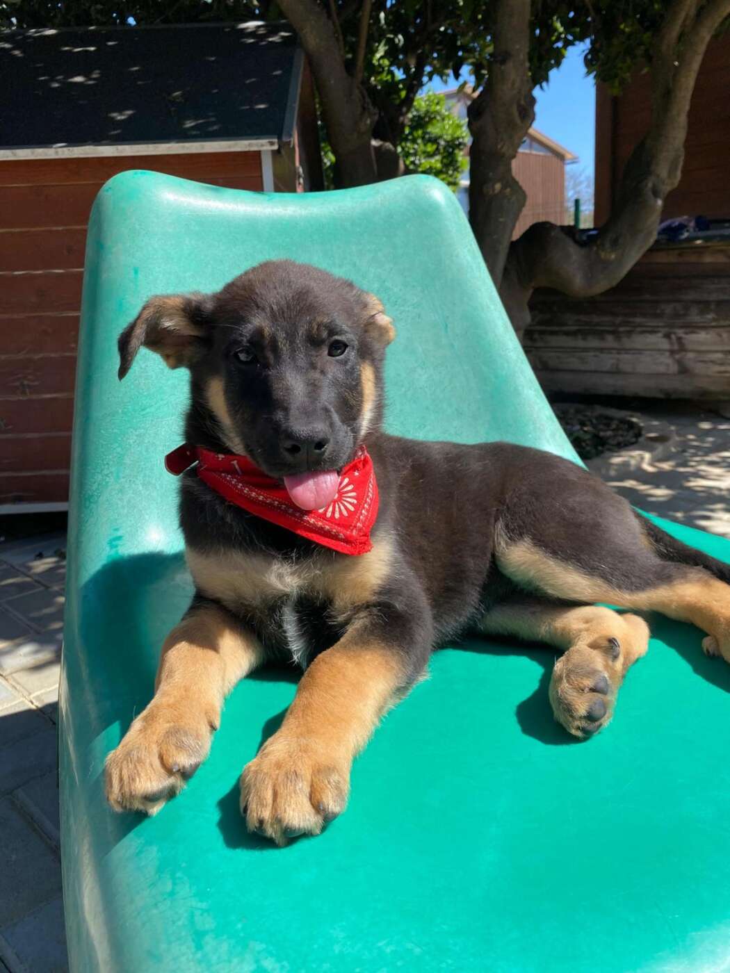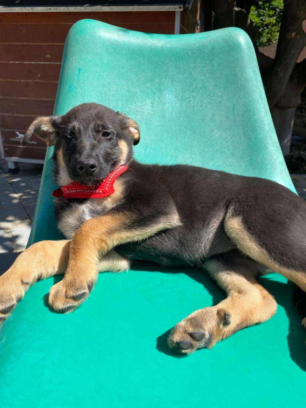 Sky, een van die pupjes, is een vrolijke, leergierige teef. Ze loopt graag kwispelend achter de vrijwilligers aan, alsof ze hun schaduw is. Spelen is haar grote passie: ze rolt in het gras, ravot met haar nestgenootjes en zoekt daarna een zonnig plekje om languit te liggen. In de vrijwilligerswoning laat ze zien hoe goed ze zich aanpast. Ze leert stap voor stap hoe een huis voelt, hoe wandelen aan de lijn werkt en hoe fijn het is om aandacht en knuffels te krijgen.