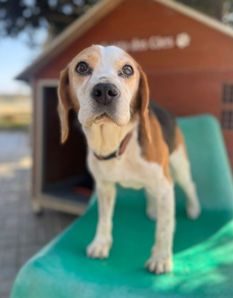 Snoopy werd aangetroffen in een van de slechtste staatsasielen in Portugal, een plek waar honden vaak jarenlang vastzitten en waar hun kansen op een toekomst klein zijn. Tussen die omstandigheden viel Snoopy op door zijn zachte en loyale karakter. Ondanks alles bleef hij open naar mensen en bleef hij zoeken naar contact en nabijheid.