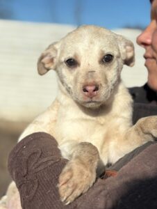 Soara is één van een nest pupjes dat afgelopen winter in Roemenië werd gevonden, gedumpt bij een grof-vuilplek. Zonder moeder, midden in de kou. Gelukkig zag een omstander hen op tijd en nam direct contact op met onze rescuer. De pups zijn meteen opgehaald en veilig ondergebracht in de rescueopvang, waar ze verder konden groeien en op krachten kwamen.
