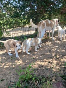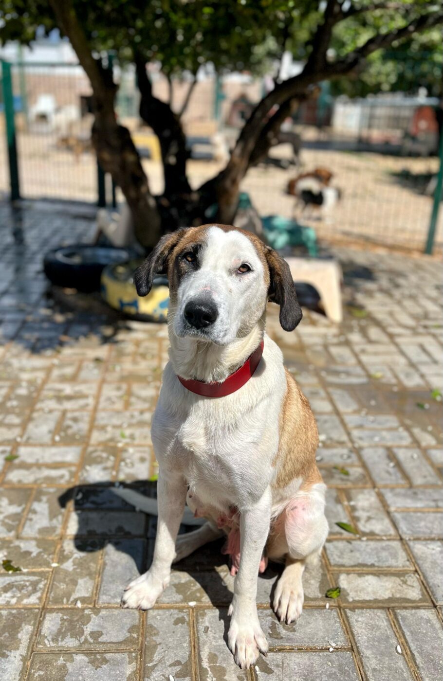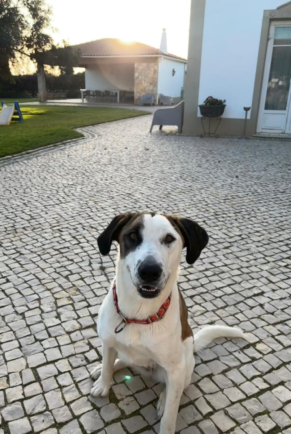 Soms komt er ineens een hond op je pad die je hart meteen inkruipt. Zo ging het met Sophie, ze stal het hart van alle vrijwilligers tegelijk. Onze vrijwilligers bezochten samen met onze Portugese partner een staatsasiel in Portugal toen ze haar zagen: een jonge, prachtige teef, samen met haar drie kleine pups in een donkere, kille kennel. Maar ondanks de omstandigheden straalde Sophie iets bijzonders uit. Zo jong als ze was, zorgde ze met alle liefde voor haar kleintjes en genoot ze zichtbaar van het beetje aandacht dat ze kreeg.