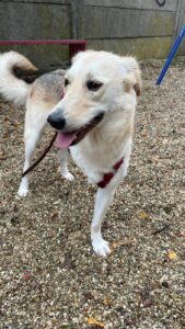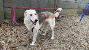 Susi is een gesteriliseerde mix teef met een geschatte geboortedatum van 1 maart 2024 en ze is ongeveer 50 cm hoog. (11/25)