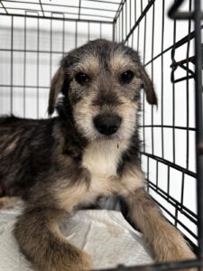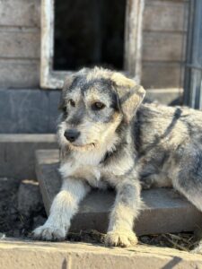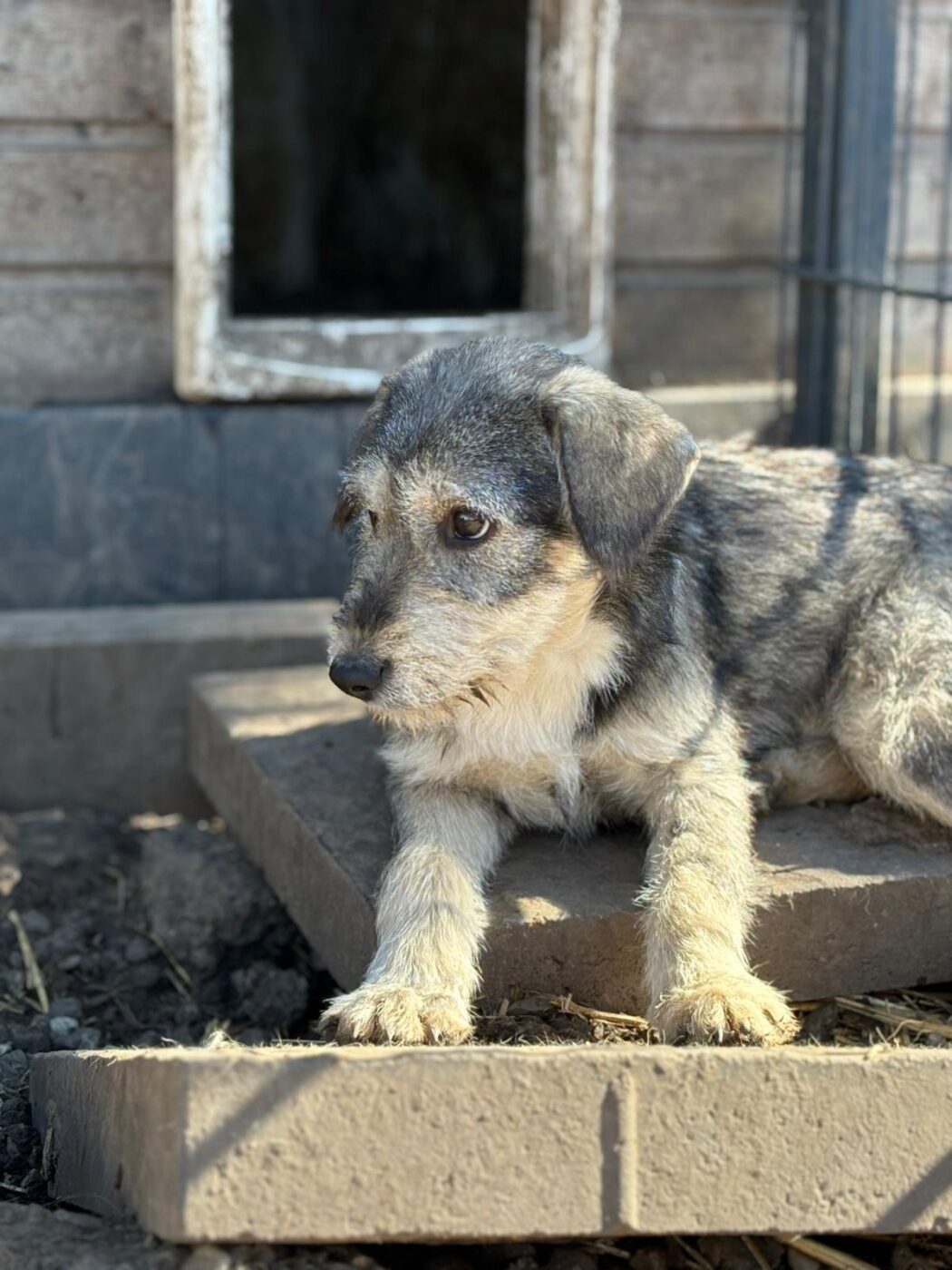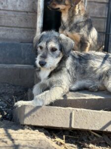 Dit lieve meisje met haar grappige harige snoetje werd samen met een aantal honden al maanden gespot bij het meer. Daar hadden ze de zomer doorgebracht en en een lieve dame bracht ze dagelijks eten. Maar nu de winter voor de deur staat en de groep hondjes allemaal sociaal en lief en afhankelijk van menselijke hulp waren vroeg ze hulp. Mirela heeft de groep gehaald en nu verblijven ze veilig bij onze partner rescue in Roemenië.