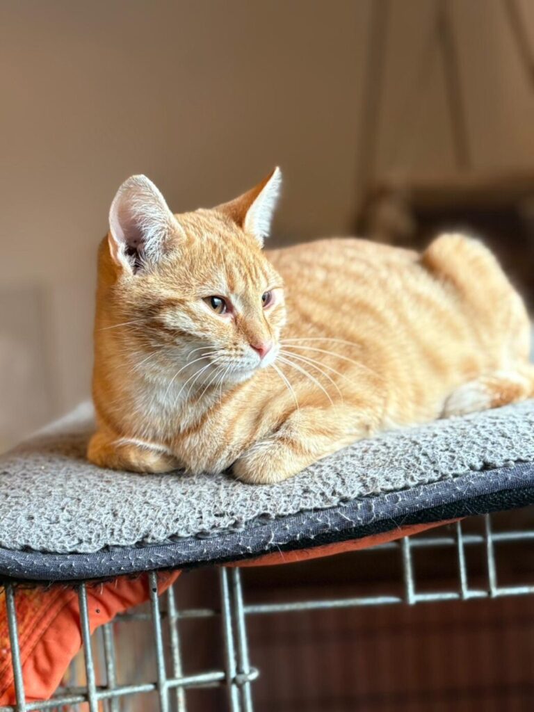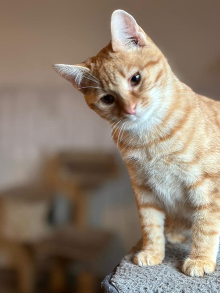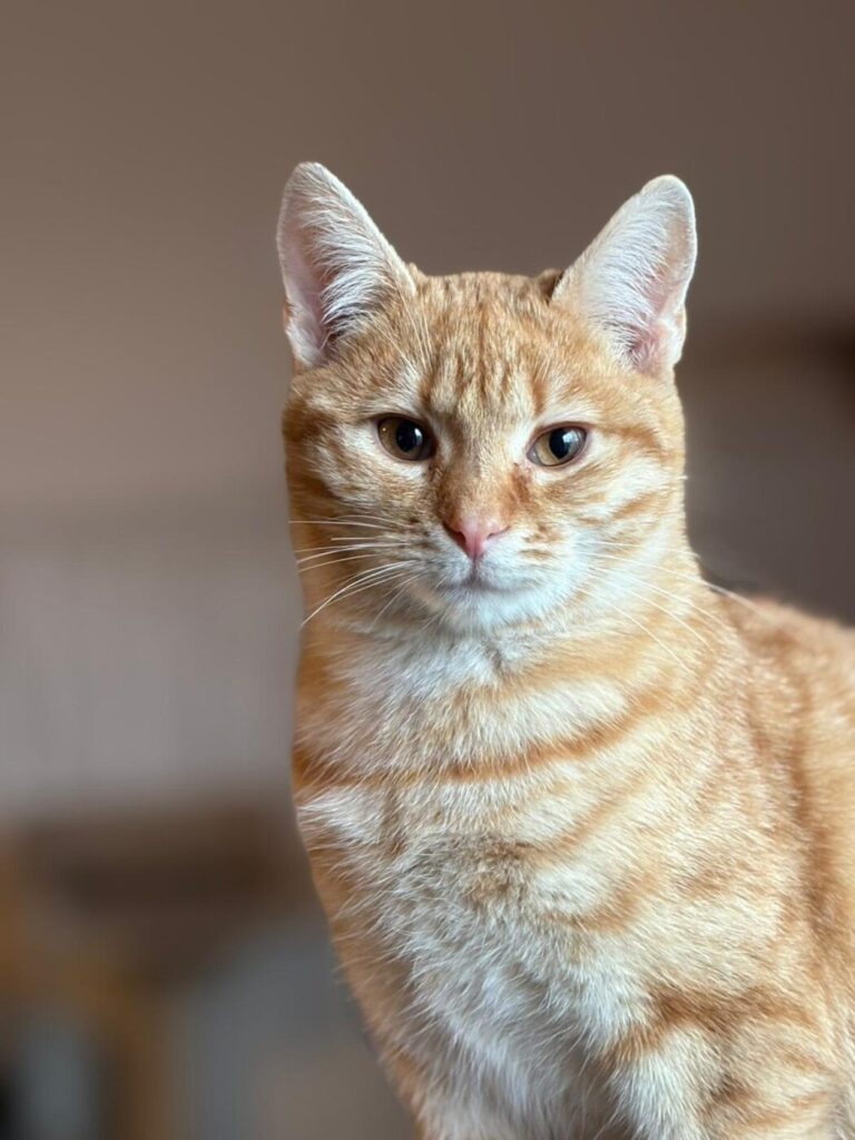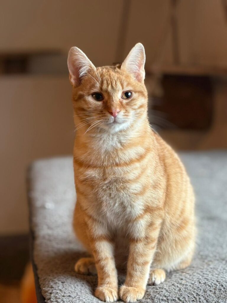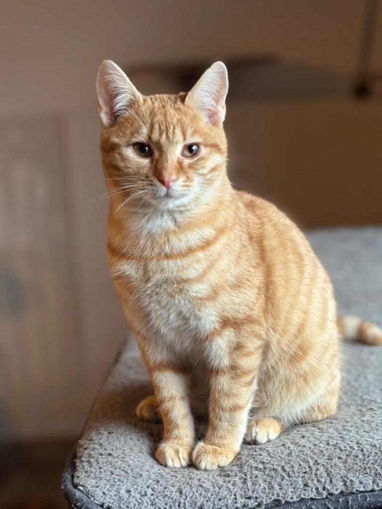 Symba houdt van gezelschap, zachte plekjes in de zon en af en toe een beetje avontuur. Hij is een echte mensenkat – trouw, lief en met een karakter dat net zo warm is als zijn kleur.