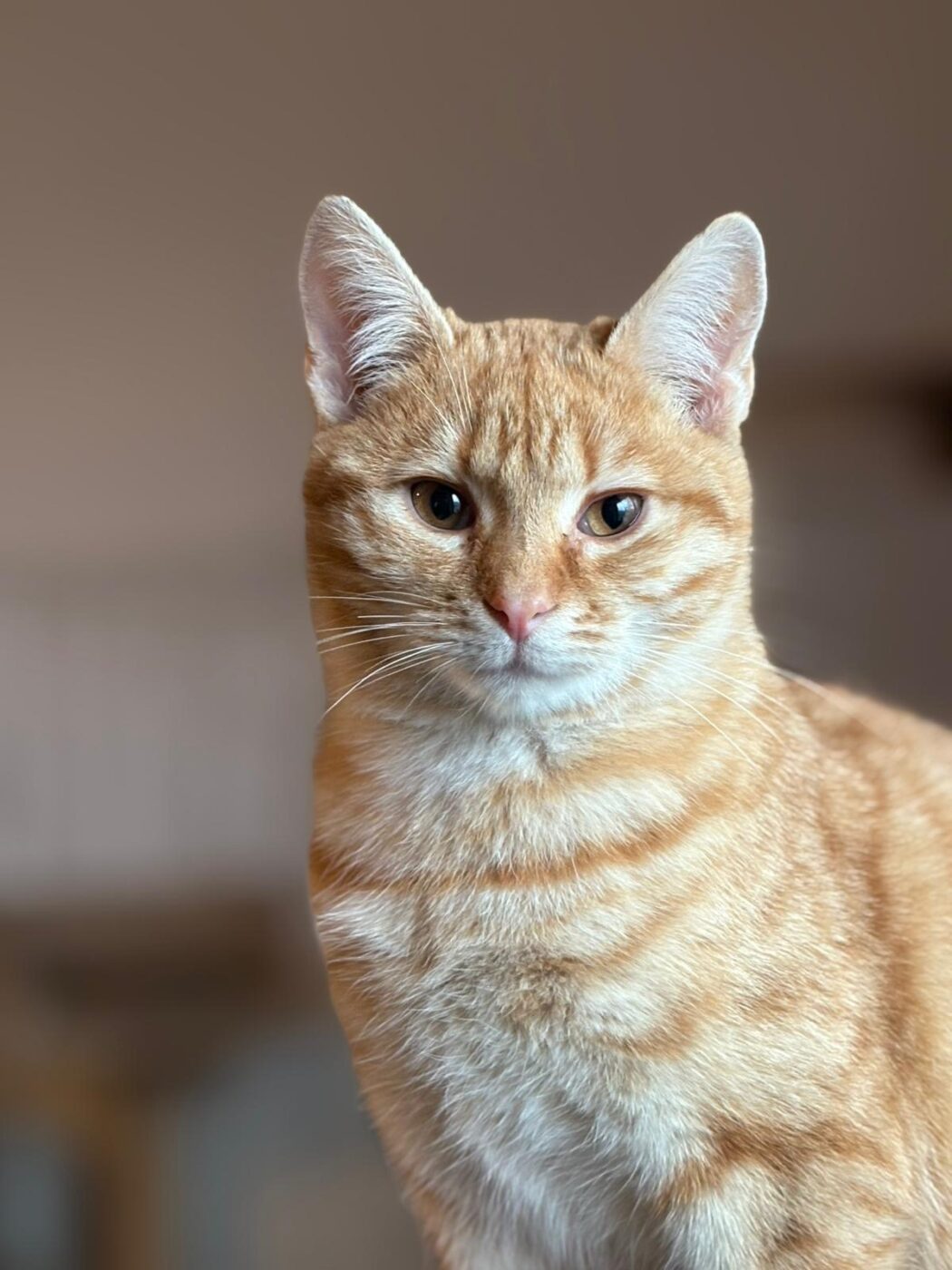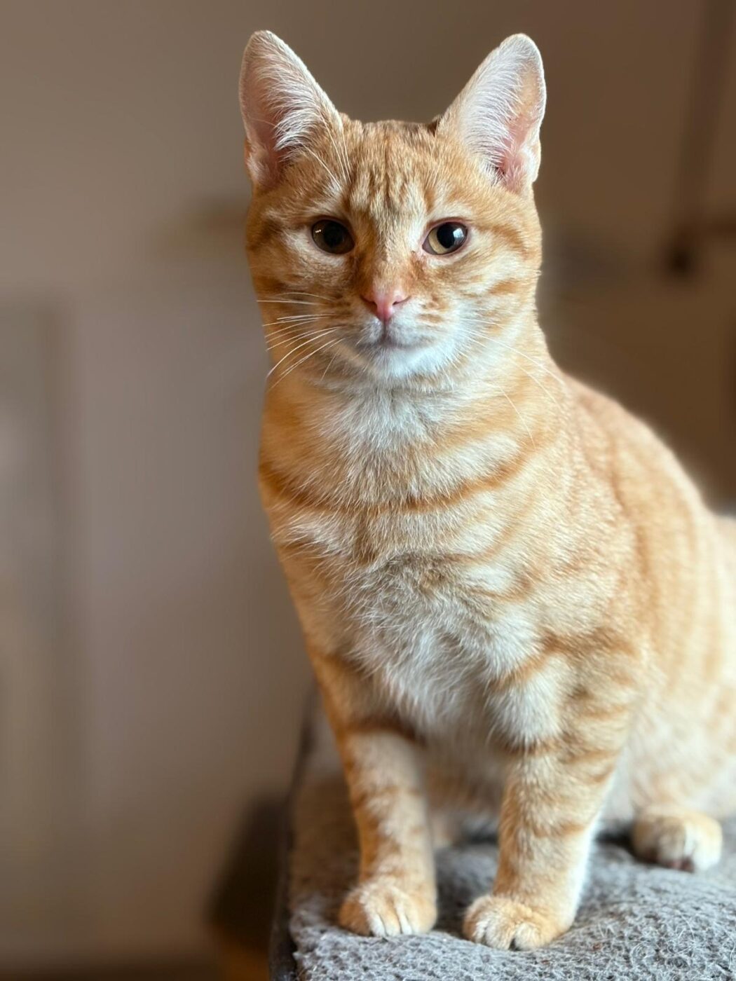 Symba houdt van gezelschap, zachte plekjes in de zon en af en toe een beetje avontuur. Hij is een echte mensenkat – trouw, lief en met een karakter dat net zo warm is als zijn kleur.