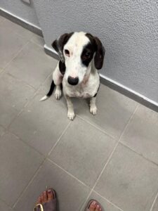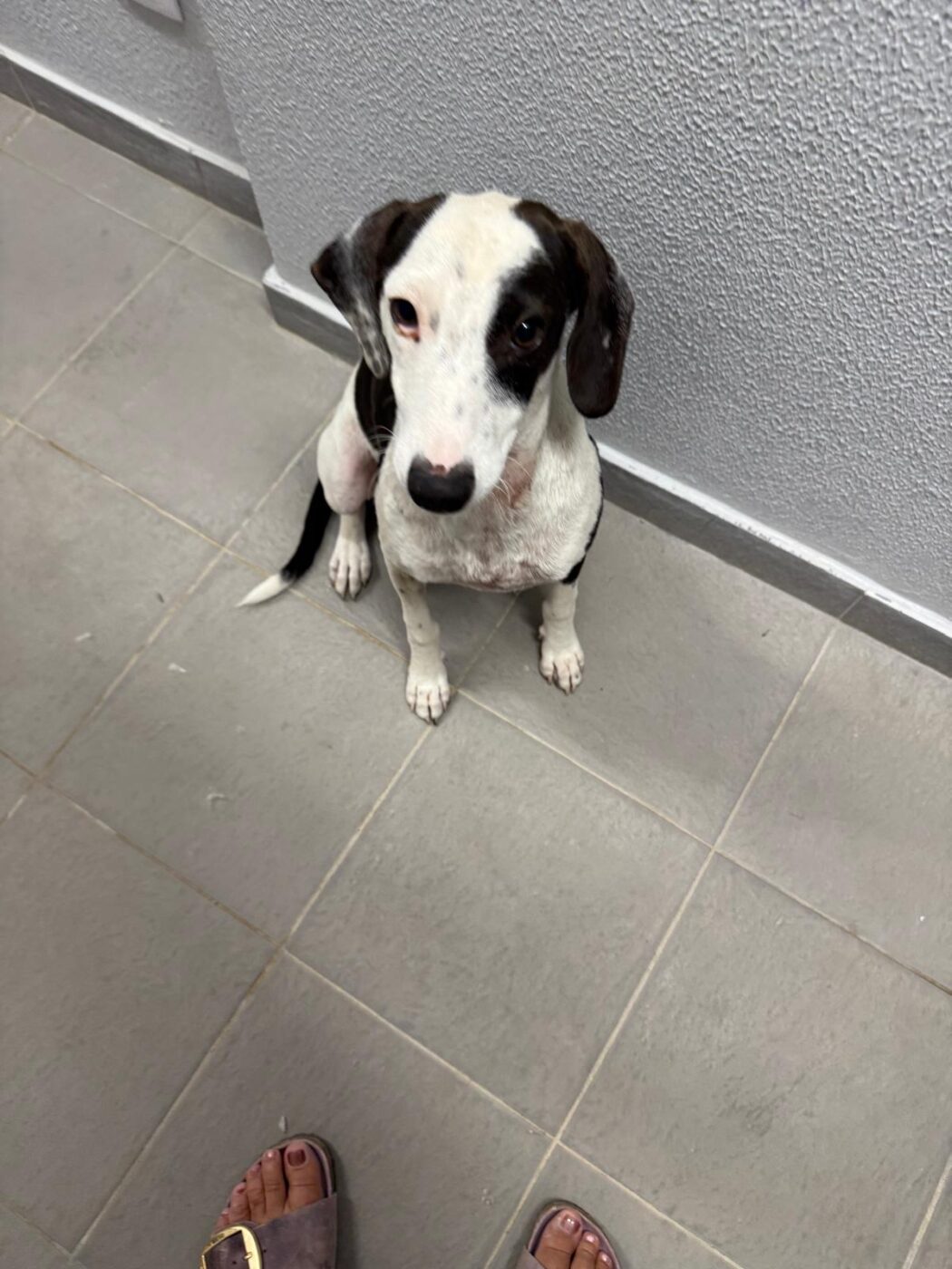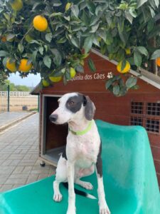 Een knappe zwart-witte pup met een hart van goud. Zijn leventje begon niet bepaald rooskleurig namelijk in een staatsasiel in Portugal. Maar gelukkig zag een lieve vrijwilliger van de opvang hem zitten en kon ze hem niet achterlaten. Nu geniet deze knappe jongemanvan zijn tweede kans, veilig in de opvang.