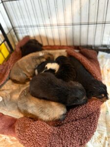 Een postbezorger hoorde ze piepen en ondernam actie en heeft ze gelukkig naar onze partner in Roemenië gebracht. Hier aangekomen zijn de kleintjes verzorgd en nagekeken of ze gezond waren en natuurlijk kregen ze meteen een flesje eten. De eerste tijd is dat enorm veel werk. Om de drie uur krijgen ze een flesje en ook ’s nachts. Maar Thor en zijn broertje en zusjes hebben het gered en zijn nu groot genoeg om een eigen plekje te vinden. Thor mocht dan ook vertrekken naar Nederland en verblijft nu bij ons in de opvang.