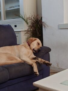 Zoals past bij zijn ras, houdt Tygo van eten, spelen, luieren en zwemmen. Buiten vindt hij het heerlijk om te snuffelen en kan hij enthousiast reageren op katten en vogels, dus dat is een aandachtspuntje bij het uitlaten. In huis is hij juist rustig en relaxed, en ligt hij graag lekker te chillen.
