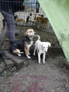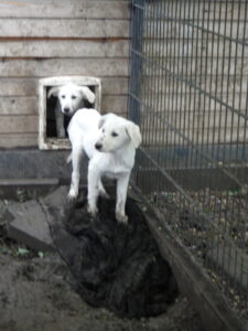 Onlangs werden bij onze partnerrescue in Roemenië twee knappe witte pupjes binnengebracht, samen met hun moeder. Niemand weet waar ze precies vandaan kwamen, maar gelukkig zijn ze nu veilig en worden ze met zorg opgevangen.