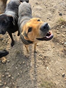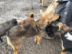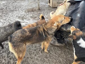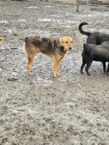 In de grote shelter doet hij het goed. Hij kan uitstekend overweg met de roedel, zoekt geen ruzie en beweegt zich kalm door de groep. Maar een plek als dit, hoe noodzakelijk ook, is geen leven voor een hond die zó mensgericht is. Er is simpelweg te weinig aandacht voor hem, te weinig tijd om écht gezien te worden.