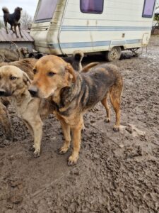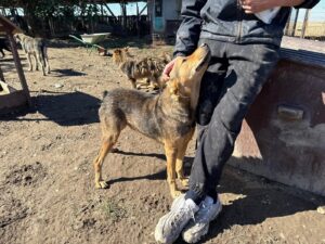 Hij belandde in het asiel als grote, bruine reu, een type dat daar helaas met tientallen tegelijk zit. Maar Vincent draagt iets mee dat hem bijzonder maakt: hij mist één oor. Waarschijnlijk afgesneden, een “traditie” die in sommige regio’s nog voorkomt. Wat het verhaal ook is, hij heeft het doorstaan. En toch is hij vriendelijk gebleven.