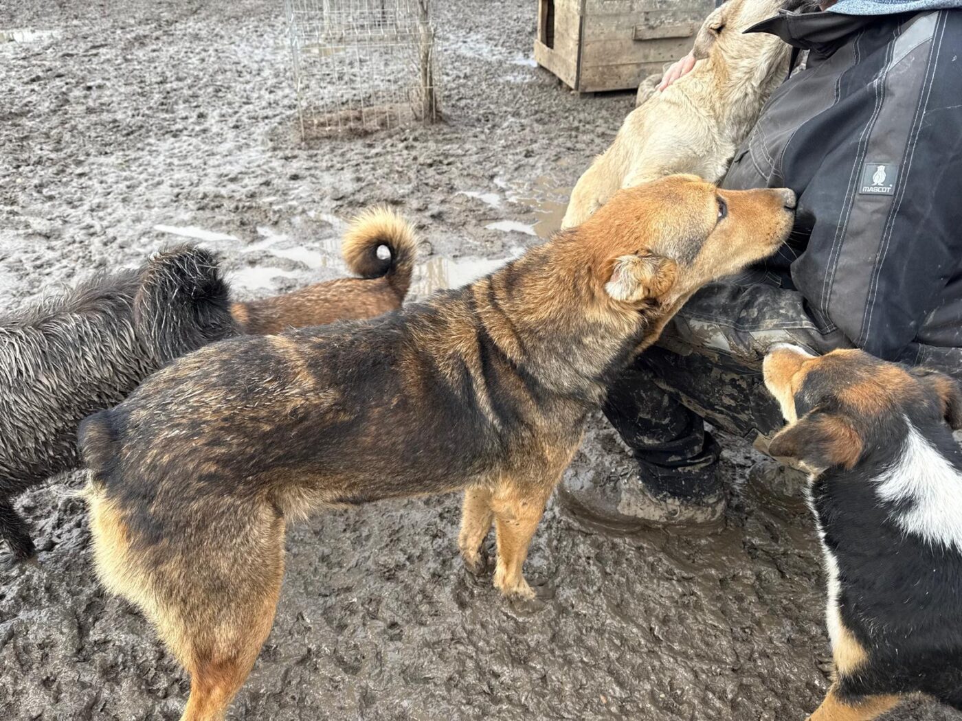 In de grote shelter doet hij het goed. Hij kan uitstekend overweg met de roedel, zoekt geen ruzie en beweegt zich kalm door de groep. Maar een plek als dit, hoe noodzakelijk ook, is geen leven voor een hond die zó mensgericht is. Er is simpelweg te weinig aandacht voor hem, te weinig tijd om écht gezien te worden.