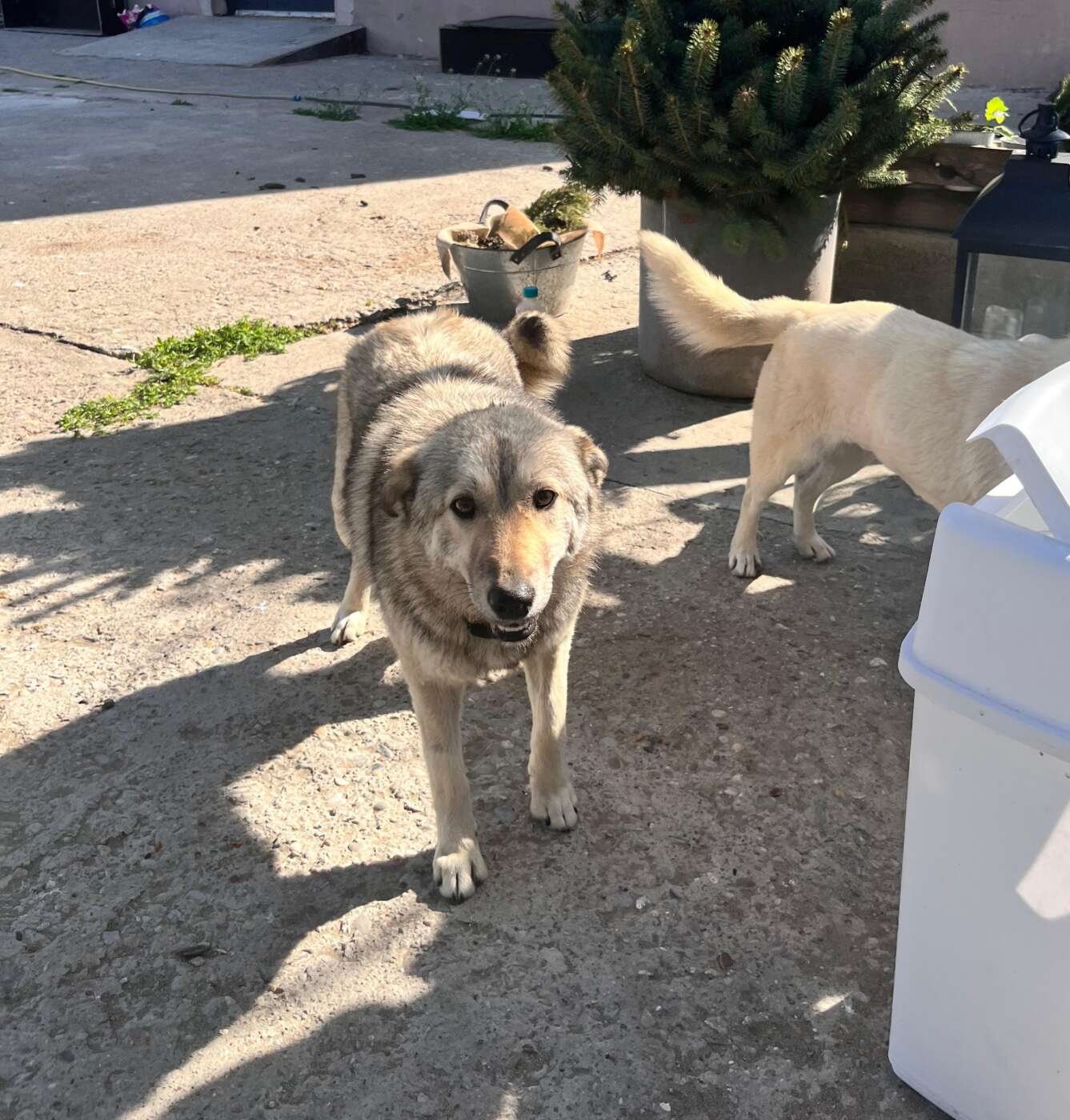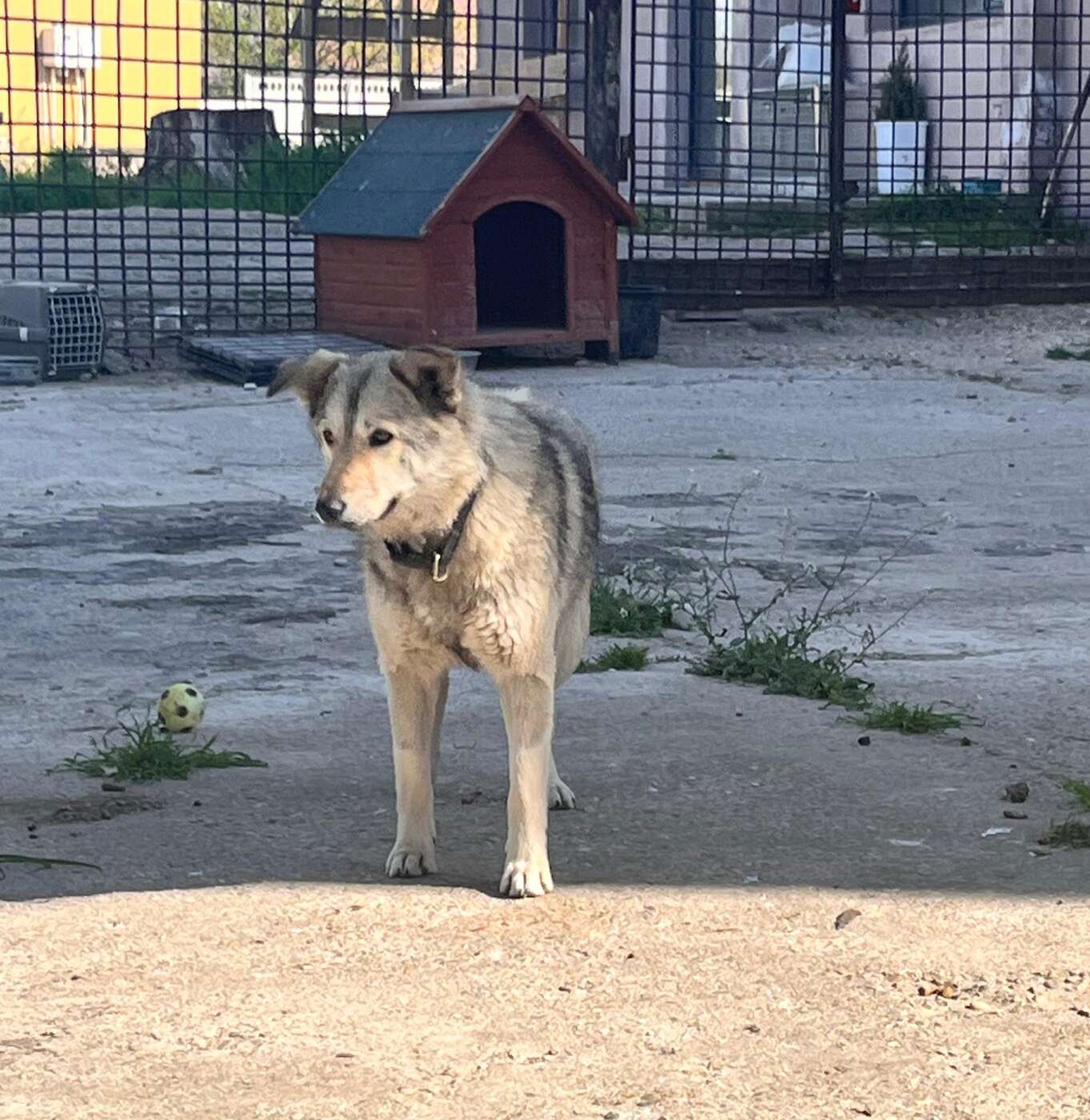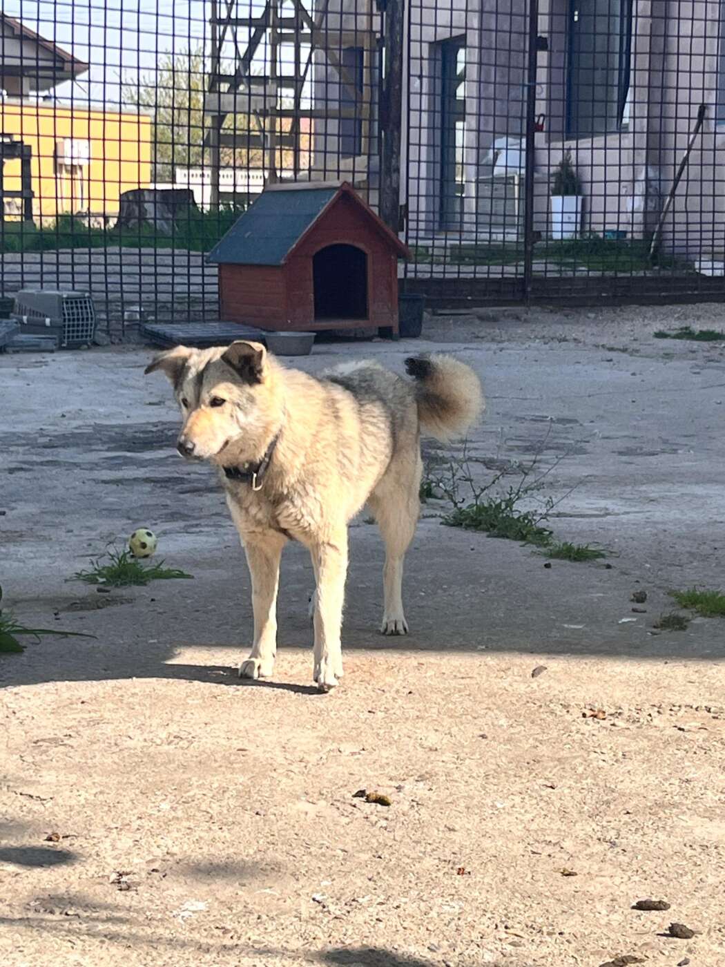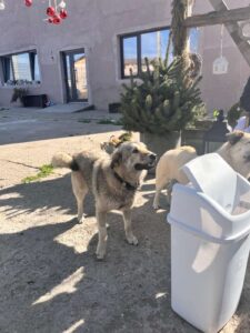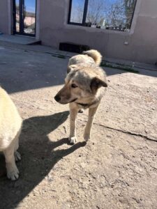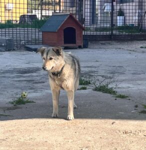 Woolfy is een gesteriliseerd teefje met een geschatte geboortedatum van 25 november 2024 en ze is ongeveer 45-48 cm hoog. (04/26)