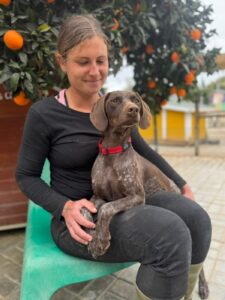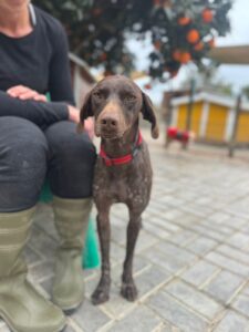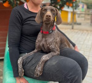 Zoë is een Duitse Staander-mix, een teefje, met een geschatte geboortedatum van 10 februari 2025 en een verwachte eindhoogte van ca 55 cm.(12/25)