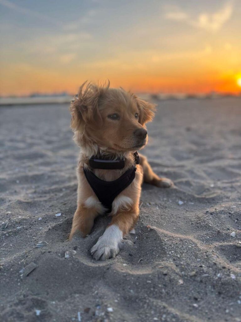 De eerste drie dagen durfde ik amper tot niet mijn bench uit, maar dit is helemaal goed gekomen. Spelen met de bal en mijn knuffels doe ik naast slapen het allerliefste en 1x per week mag ik spelen met mijn vriendjes in de opvang. Alle angst die ik had is verdwenen, ik groet graag mensen op straat en vind het heerlijk om op een terras in de zon te liggen. Soms luister ik heel goed, maar als ik geen zin heb doe ik alsof ik doof ben, hier werken wij aan bij puppycursus (het is ook gewoon leuk om mijn baasjes uit te testen, met knuffels maak ik dit altijd weer goed).